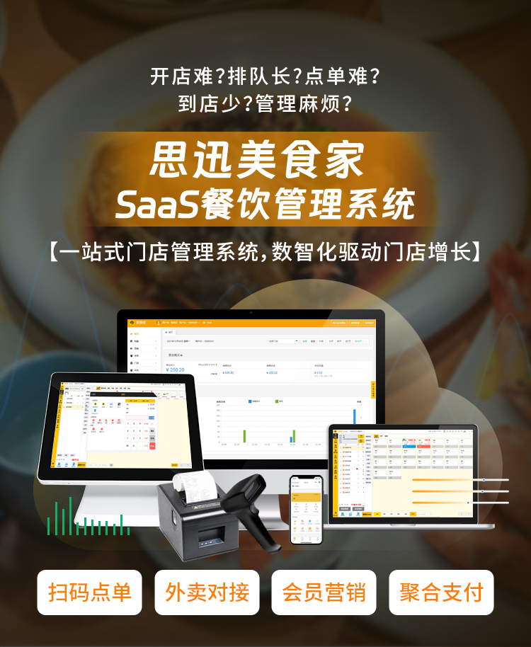 智能版为大中型餐饮企业提供专业的一站式解决方案。具有收银系统、自助点餐、会员营销和供应链管理四大模块,打通外卖、美团、团购等平台,统一数据管理,提供智能化分析和数据支持,实现精准营销,帮助商家做好餐厅运营管理工作。