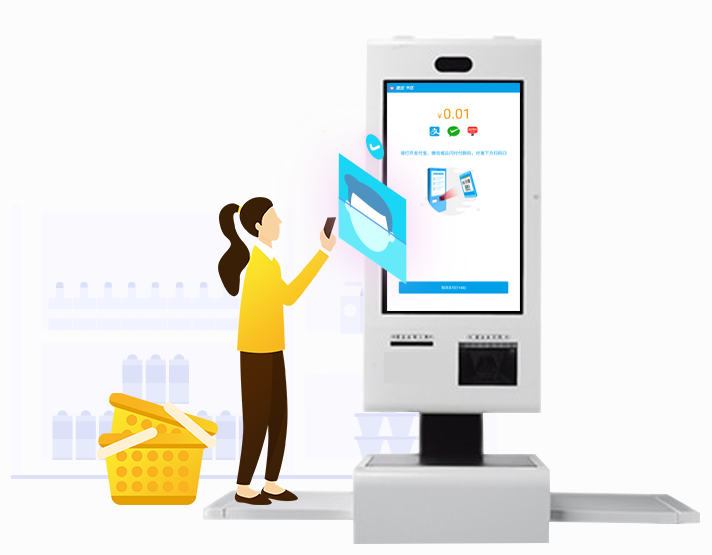 自助收银机是指用于在超市、卖场实现自助购物的设备。该设备能够让顾客以自助的方式扫描商品、结账付款,免去排队过程,解放收银员与收银之间一对一的束缚关系。